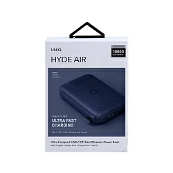 Внешний аккумулятор Uniq HYDEAIR 10000W, беспровод 7.5/10W, провод USB-C 18W, дисплей, синий