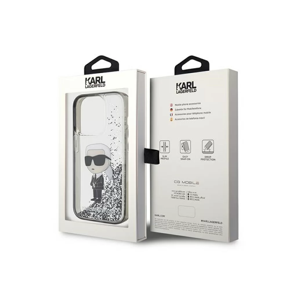 Чехол Lagerfeld для iPhone 15 Liquid Glitter NFT Karl Ikonik Hard Transparent/Black