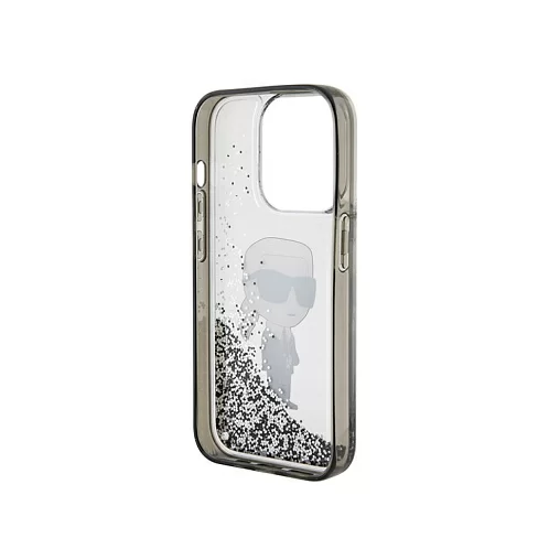 Чехол Lagerfeld для iPhone 15 Plus Liquid Glitter NFT Karl Ikonik Hard Transparent/Black