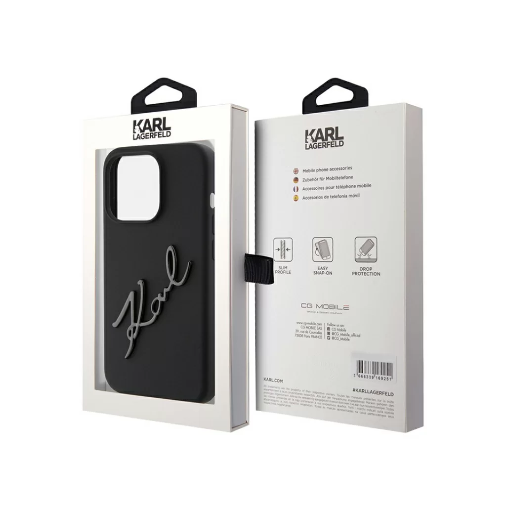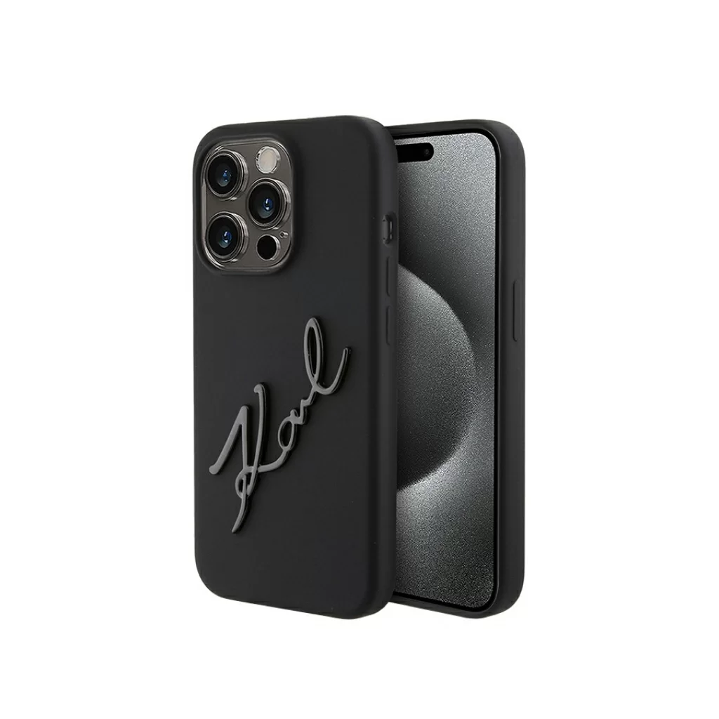 Чехол Lagerfeld для iPhone 15 Pro Liquid Silicone Metal Autograph Hard Black