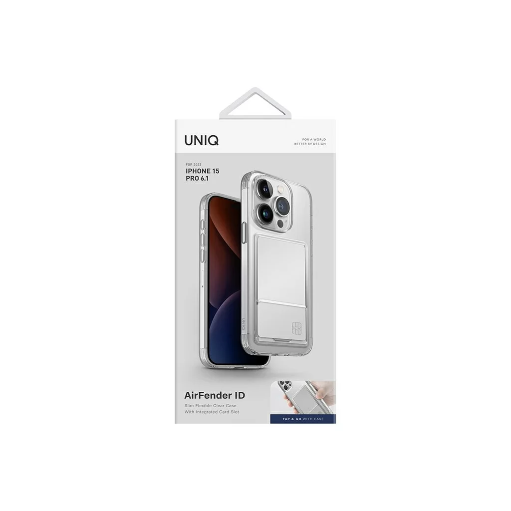 Чехол Uniq для iPhone 15 Pro Air Fender ID, cardslot, прозрачный