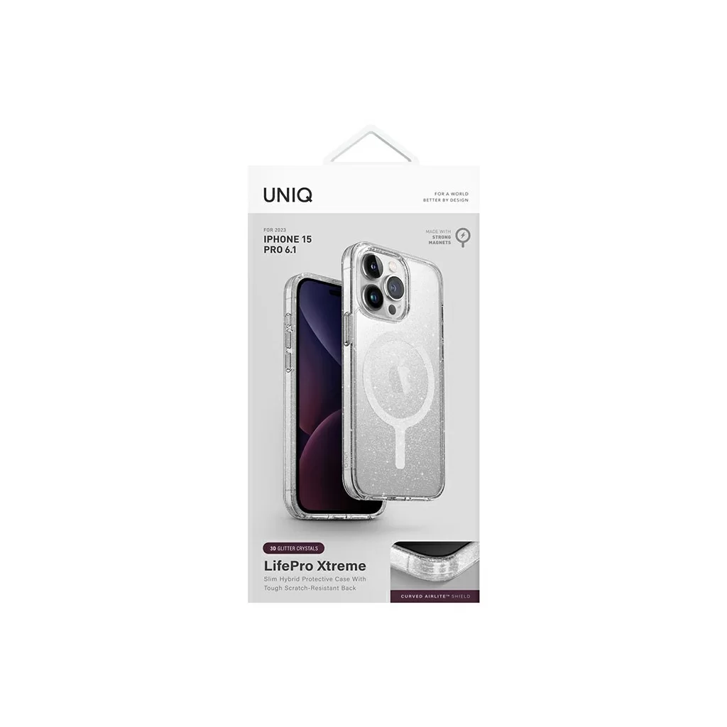 Чехол Uniq для iPhone 15 Pro Lifepro Xtreme, MagSafe, прозрачный/мишура