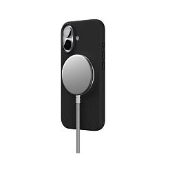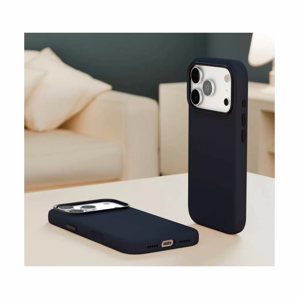 Чехол сделан из приятного на ощупь силикона, который отталкивает воду. По краям есть специальный бортик, который приподнят над экраном и камерой. Так что если телефон упадёт, у него будет много шансов остаться целым и невредимым. Внутри ещё мягкая подкладка из микрофибры, чтобы задняя панель не царапалась.Aster Pro Case идеально садится на телефон, не мешает пользоваться кнопками и разъёмами. И самое главное — он поддерживает MagSafe. Это значит, что можно заряжать телефон или крепить аксессуары от Apple, не снимая чехол. Очень удобно!