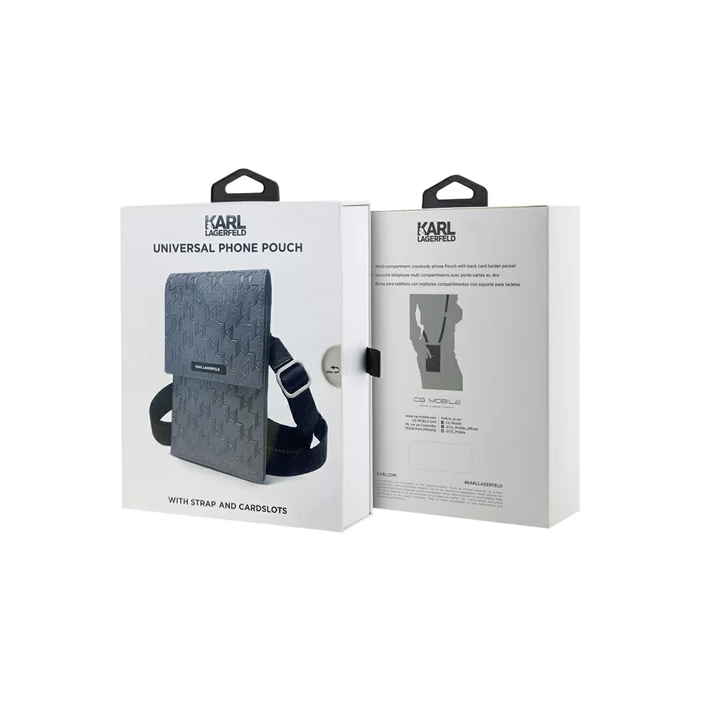 Удобная и эффектная сумка-чехол для мобильного телефона, выполненная из прочной искусственной кожи с символикой дома моды Karl Lagerfeld. На откидной крышке сумки размещено фирменное изображение дизайнера или логотипа (в зависимости от модели). Закрывается крышка при помощи магнитной застежки.