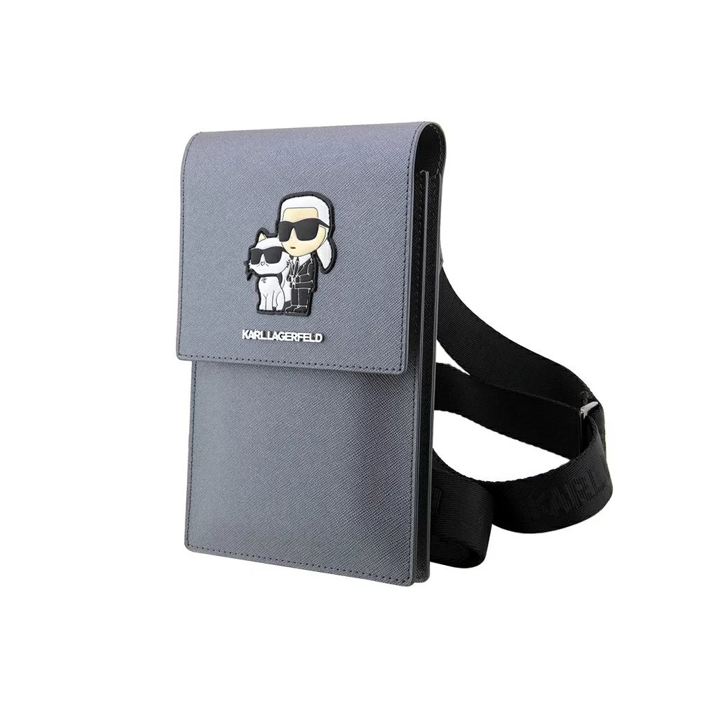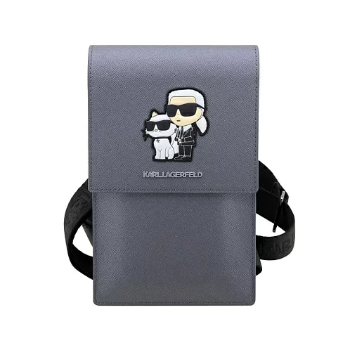 Сумка Lagerfeld Wallet Phone Pouch Saffiano NFT Karl & Choupette для смартфонов, серебристый