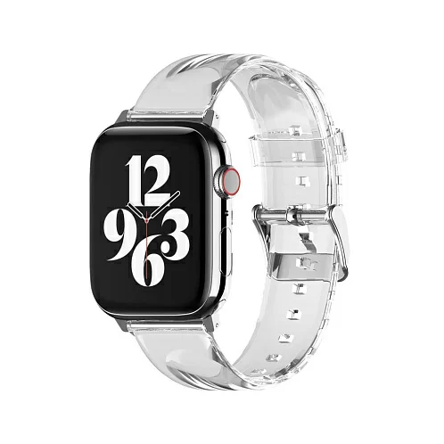 Элегантный прозрачный ремешок для Apple Watch из мягкого термополиуретана высокого качества. Легко застегивается и регулируется по запястью. Воздухопроницаемая гипоаллергенная поверхность обеспечивает большую устойчивость к поту. Надежное крепление и эргономичный дизайн делают ношение ремешка чрезвычайно удобным для повседневного использования. Со временем не теряет цвет и форму, легко моется. Совместим с часами Apple Watch с корпусом 45/44/42 мм