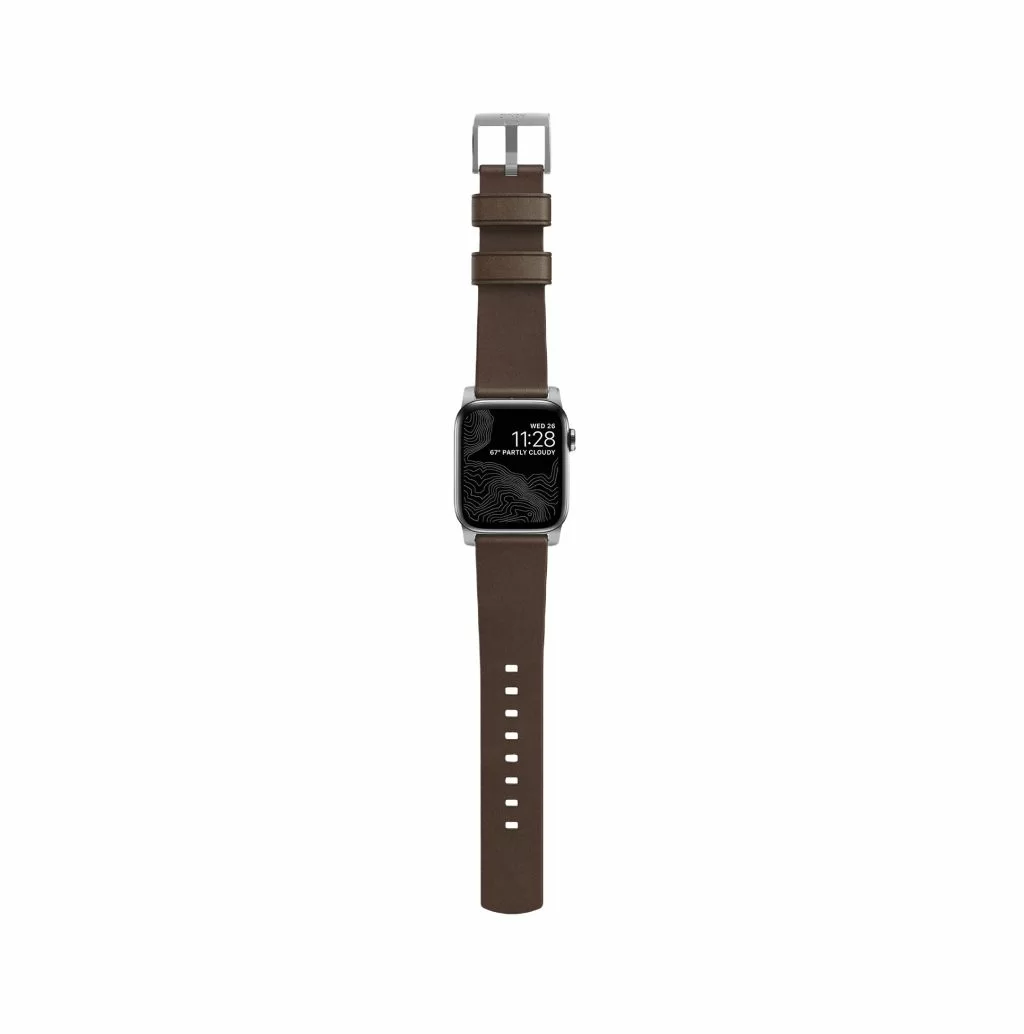Ремешок Leather Strap от Nomad - разработанный, чтобы придать вашим интеллектуальным часам классический, но смелый новый вид Modern Strap изготовлен из минимально обработанной кожи растительного дубления из одной из старейших кожевенных мастерских Америки и нержавеющей стали. Качественная Horween кожа со временем создает патину, создавая богатый уникальный дизайн. Ремешок приятный на ощупь, регулируется под разный охват запястья.