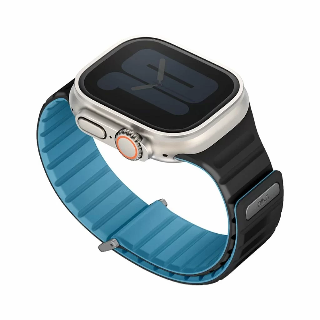 Двусторонний ремешок из мягкого силикона Uniq REVIX EVO для Apple Watch с размером корпуса 49-46-45-44. Вы можете легко поменять внешние стороны ремешка в зависимости от своего стиля и предпочтений. Фиксируется на руке с помощью удобной магнитной застежки, выдерживает нагрузку до 1.2 кг. Возможность регулировки длины за счет встроенных магнитов обеспечивает точное соответствие размерам руки. Металлическая стальная застежка дополнительно фиксирует устройство на запястье, позволяя не беспокоиться об утере даже при занятиях спортом.