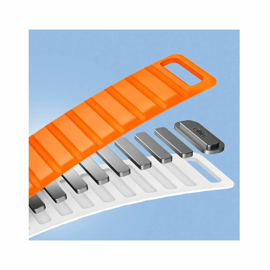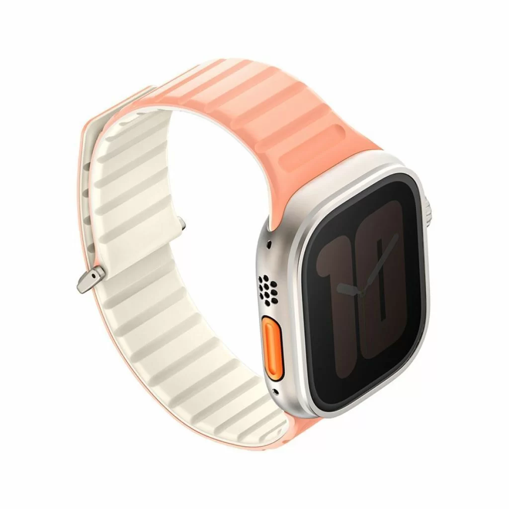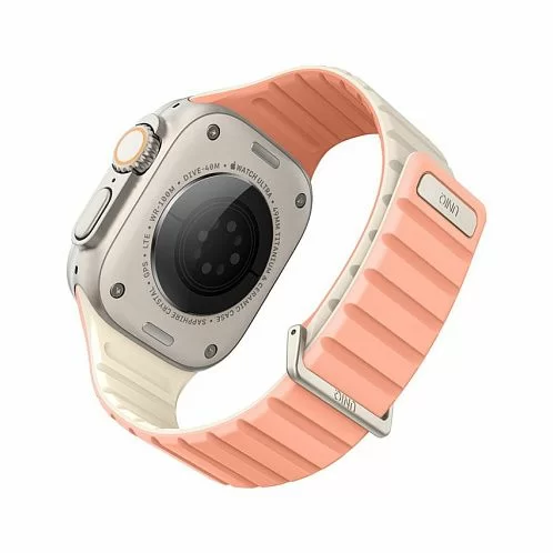Двусторонний ремешок из мягкого силикона Uniq REVIX EVO для Apple Watch с размером корпуса 49-46-45-44. Вы можете легко поменять внешние стороны ремешка в зависимости от своего стиля и предпочтений. Фиксируется на руке с помощью удобной магнитной застежки, выдерживает нагрузку до 1.2 кг. Возможность регулировки длины за счет встроенных магнитов обеспечивает точное соответствие размерам руки. Металлическая стальная застежка дополнительно фиксирует устройство на запястье, позволяя не беспокоиться об утере даже при занятиях спортом.