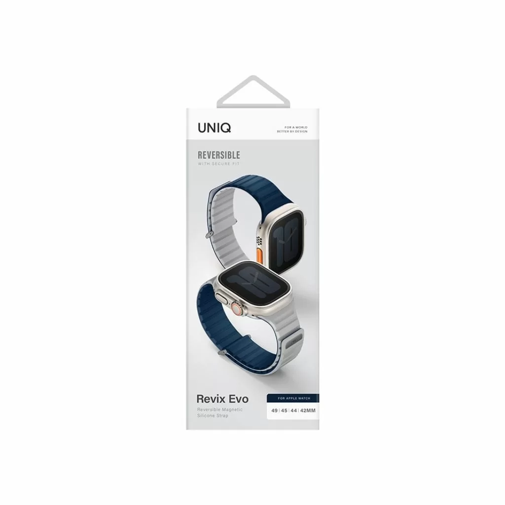 Ремешок Uniq Revix EVO Premium для Apple Watch, 49/45/44/42 мм, двухсторонний, синий/серый