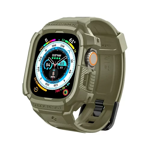 Чехол с ремешком SPIGEN Rugged Armor Pro для Apple Watch Ultra (49 mm), зеленый/хаки