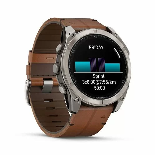 Умные часы Garmin Fenix 8 Sapphire AMOLED 51 мм, титан, ремешок - кожа/коричневый + силикон/графит