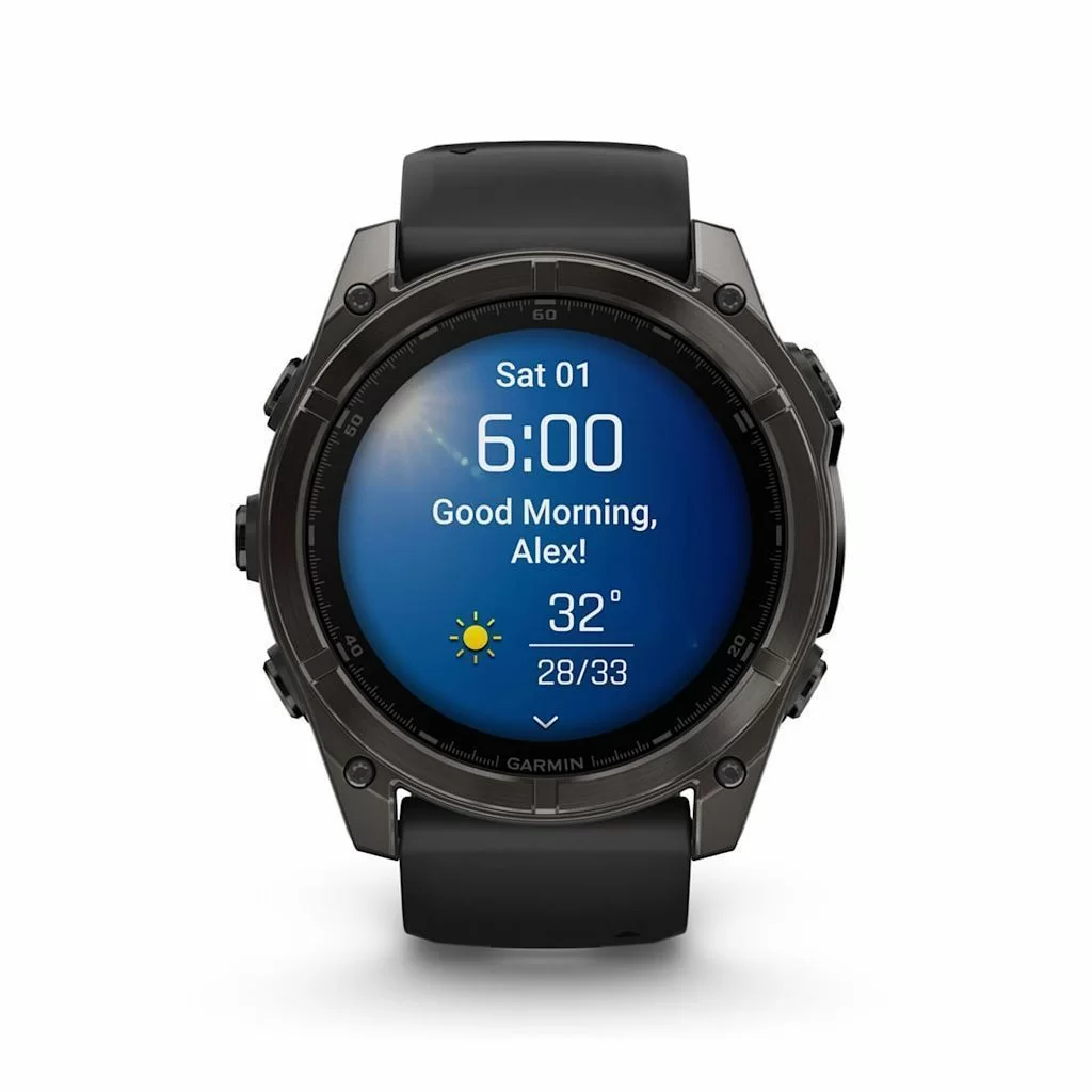 Garmin Fenix 8 — умные часы в титановом корпусе с поддержкой датчиков мониторинга здоровья, совместимы со смартфонами на ОС Android и iOS. Могут принимать звонки и сообщения. Есть функция голосового управления. С часами можно нырять в воду на глубину до 100 м.