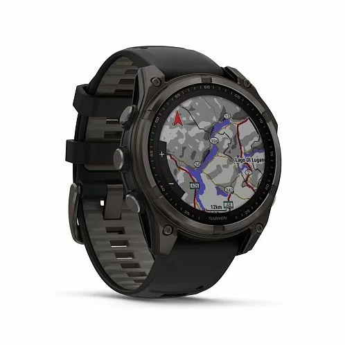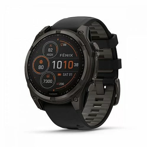 Умные часы Garmin Fenix 8 Sapphire Solar 47 мм, титан с DLC, ремешок - силикон, чёрный/серый