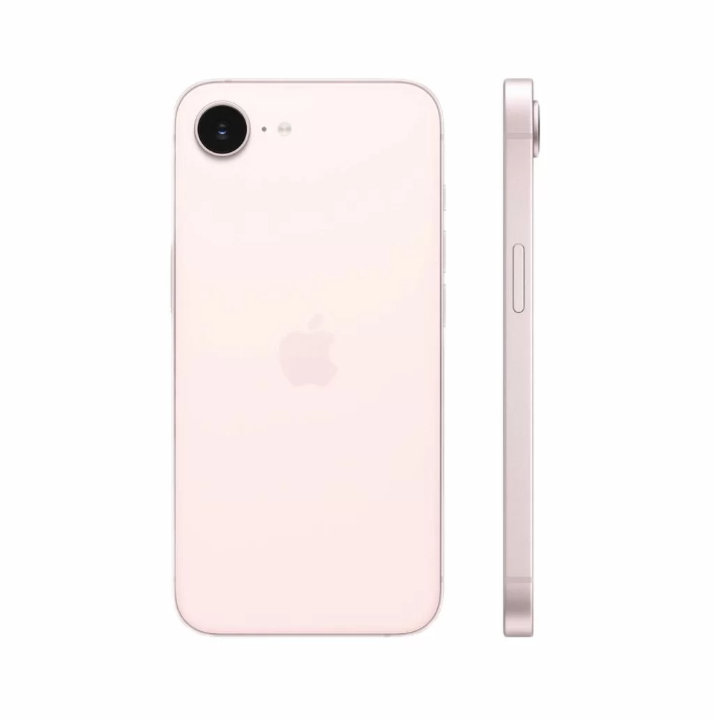 Три цвета: сдержанный чёрный, чистый белый и новый Soft Pink — пастельный розовый оттенок, которого раньше не было в e-линейке. На боковой грани появилась кнопка Action Button: её можно назначить на любое действие — запуск камеры, фонарика, переводчика, визуального интеллекта или беззвучного режима. Разъём — USB-C.