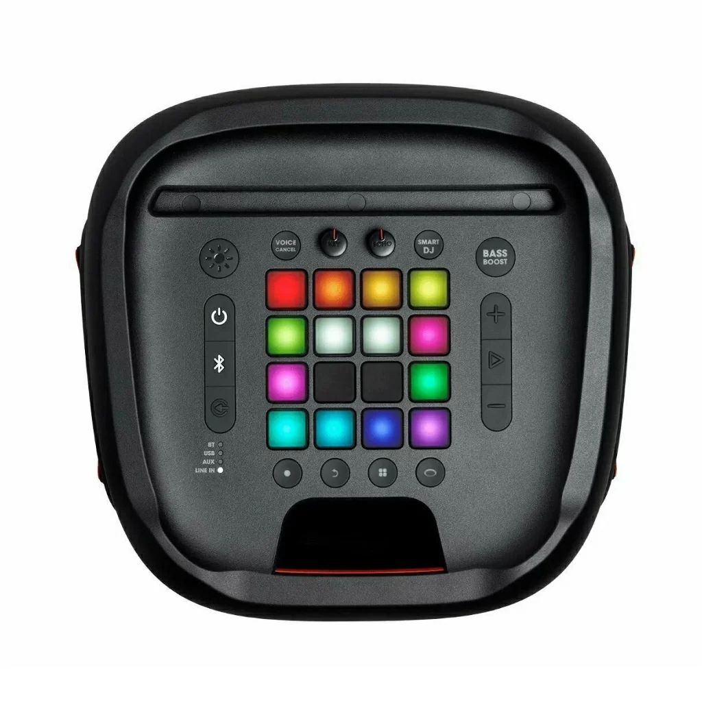 JBL PartyBox 1000 — это мощная акустическая система с полноформатными динамичными световыми эффектами и легендарным качеством звука JBL. Просто подключи микрофон или гитару и выходи на сцену! Или включи плейлист по Bluetooth или с USB-накопителя. Светодиодные браслеты DJ и Party Band превращают вечеринку в настоящий концерт! Соедините две колонки PartyBox по беспроводной сети с помощью функции TWS или с помощью кабеля RCA-RCA. Да начнется вечеринка!