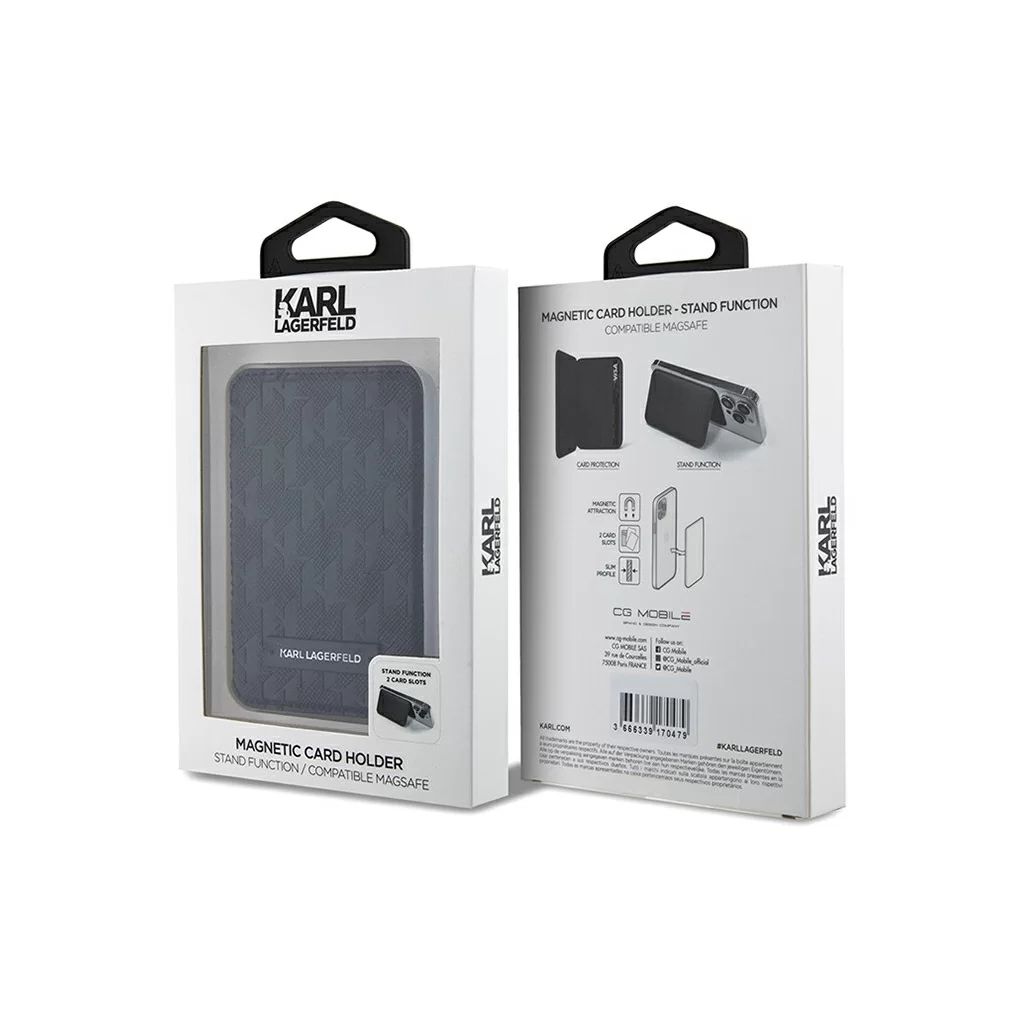 Чехол-бумажник Lagerfeld Wallet MagSafe Cardslot Stand Saffiano Monogram Plate loogo, черный