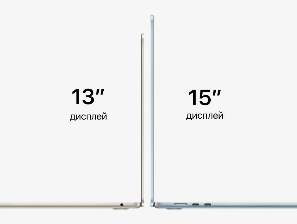 Четыре цвета на выбор — Sky Blue, Silver, Starlight и Midnight. Каждый MacBook Air поставляется с кабелем MagSafe в тон корпусу.