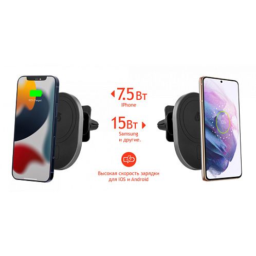 Заряжайте свой смартфон еще удобнее и быстрее, не отвлекаясь от дороги. Мощный магнит в автодержателе Go-Power поддерживает функцию зарядки MagSafe. Держатель подходит ко всем видам дефлекторов, а телефон крепится на магнитной панели как в вертикальной так и горизонтальной ориентации одним движением.