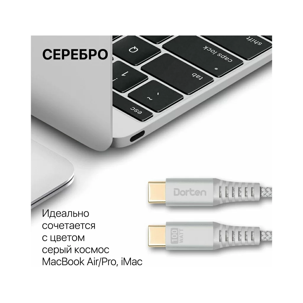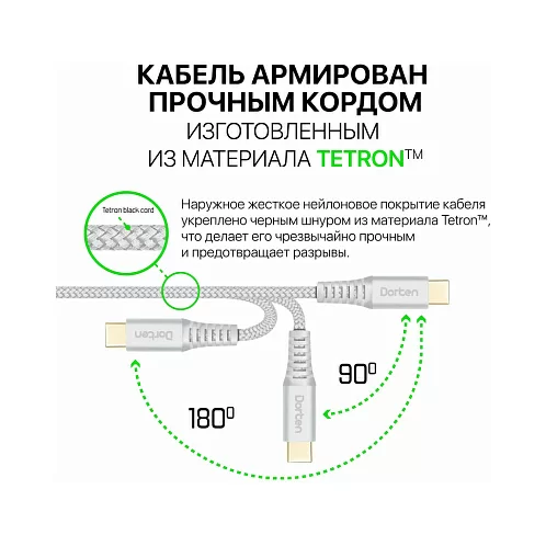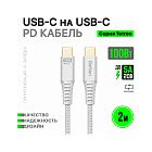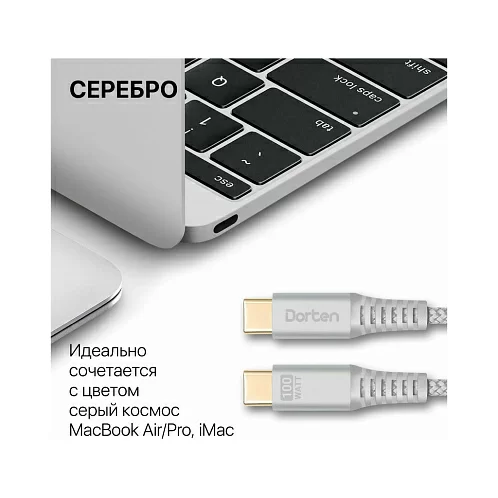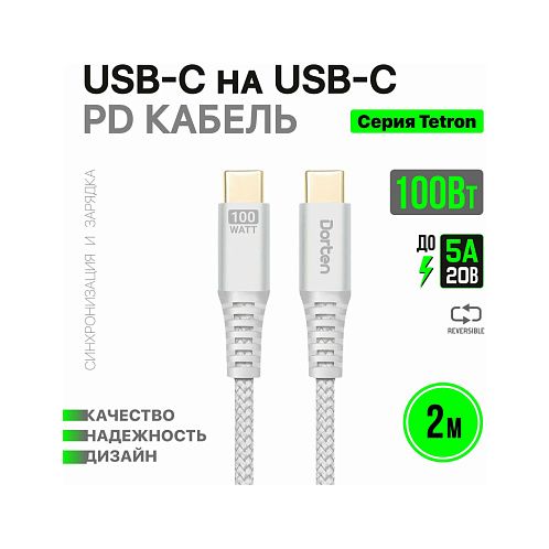 Кабель Dorten USB-C / USB-C PD, 100W, 2м, серебристый