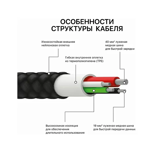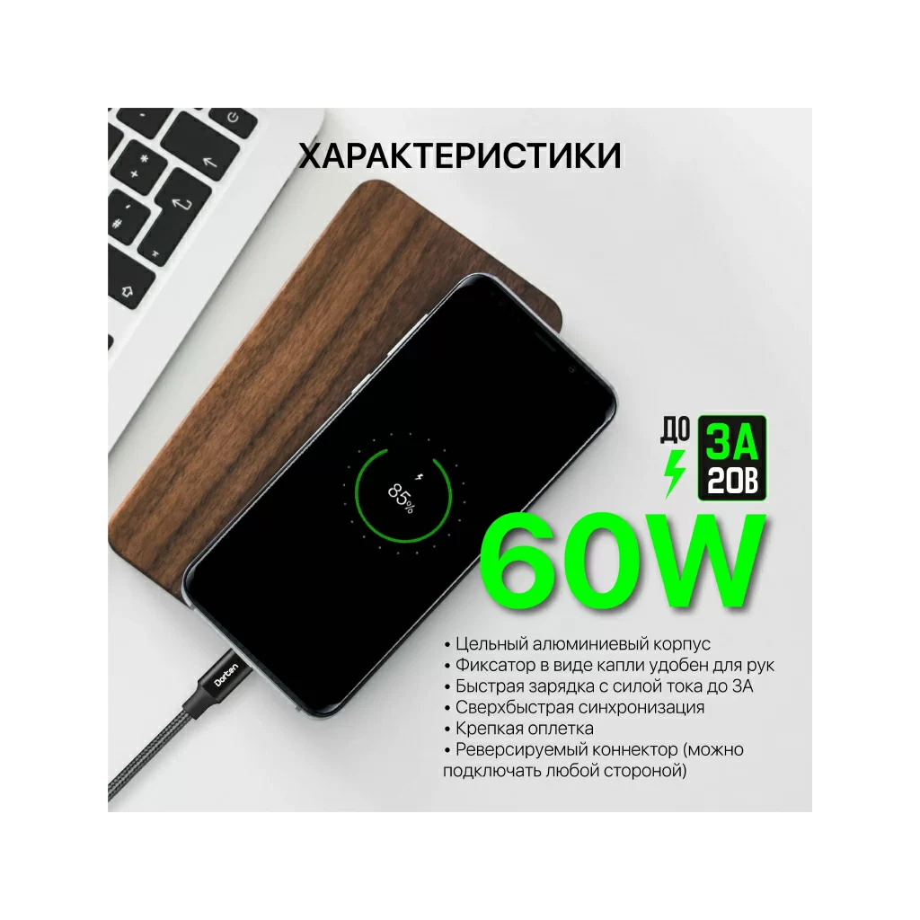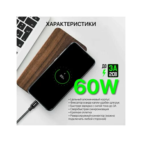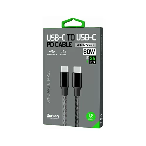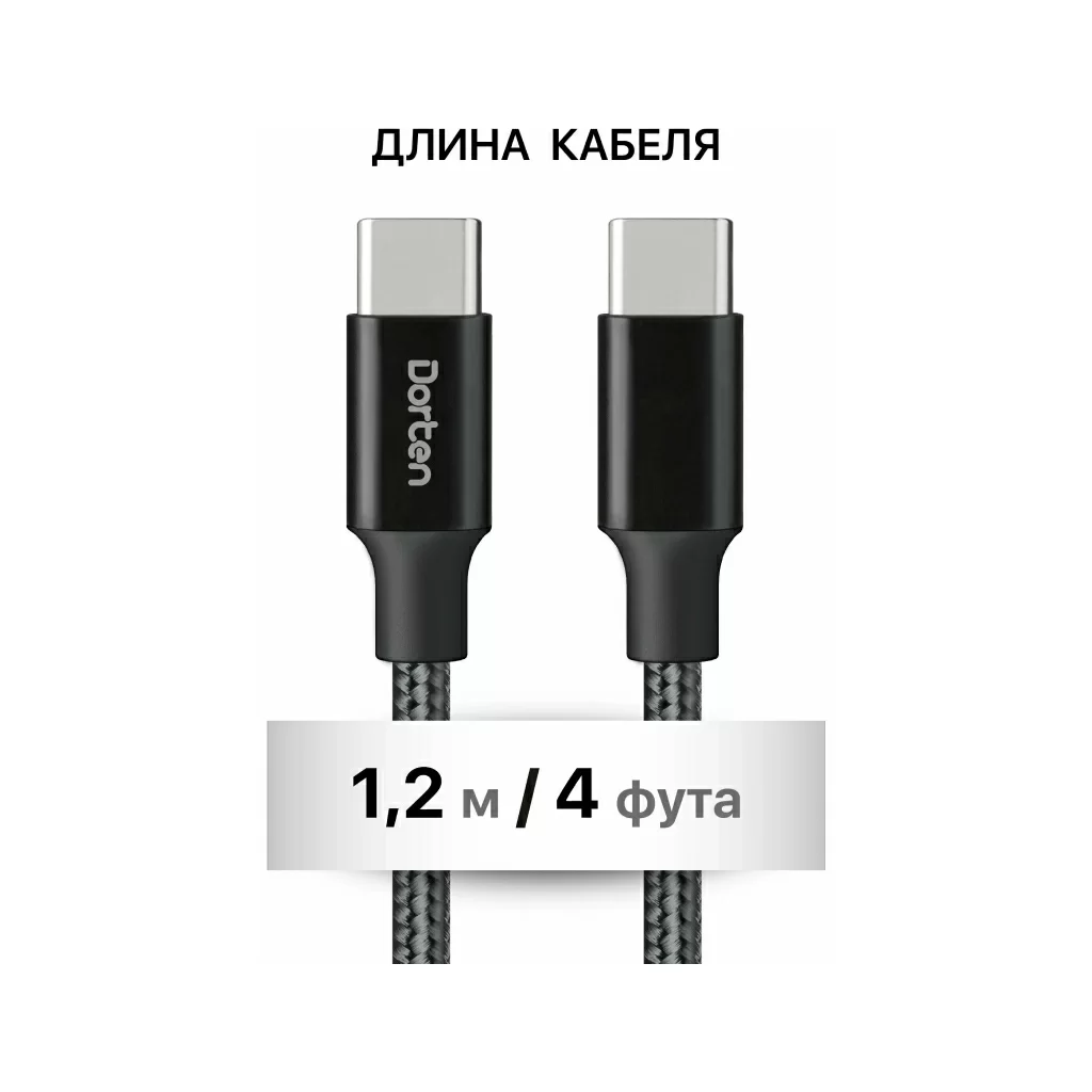 Кабель Dorten USB-C / USB-C PD, 60W, 1.2м, черный