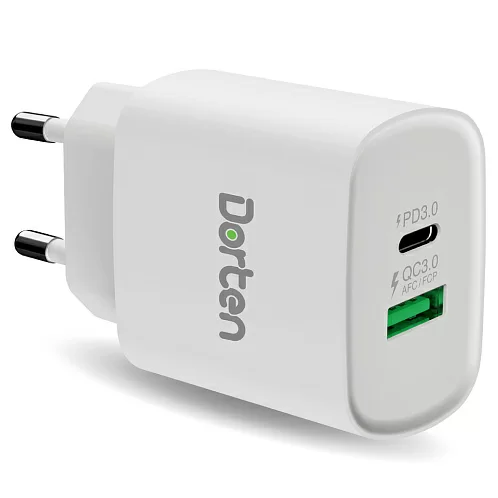 Сетевое зарядное устройство Dorten 2-Port USB 20W Wall Quick Charger PD3.0+QC3.0, белый