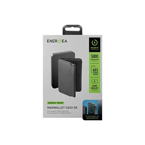 Внешний аккумулятор с бумажником EnergEA MagWallet CASH, 5000W Magsafe 15W USB-C 20W, темно-серый