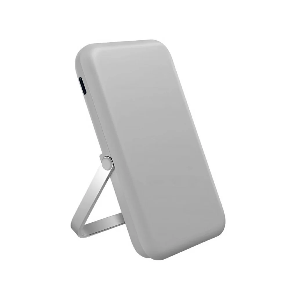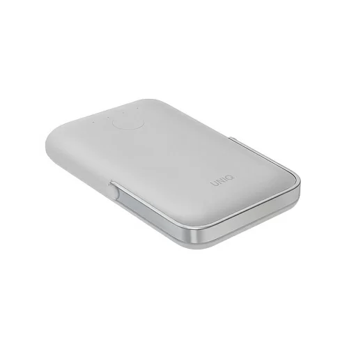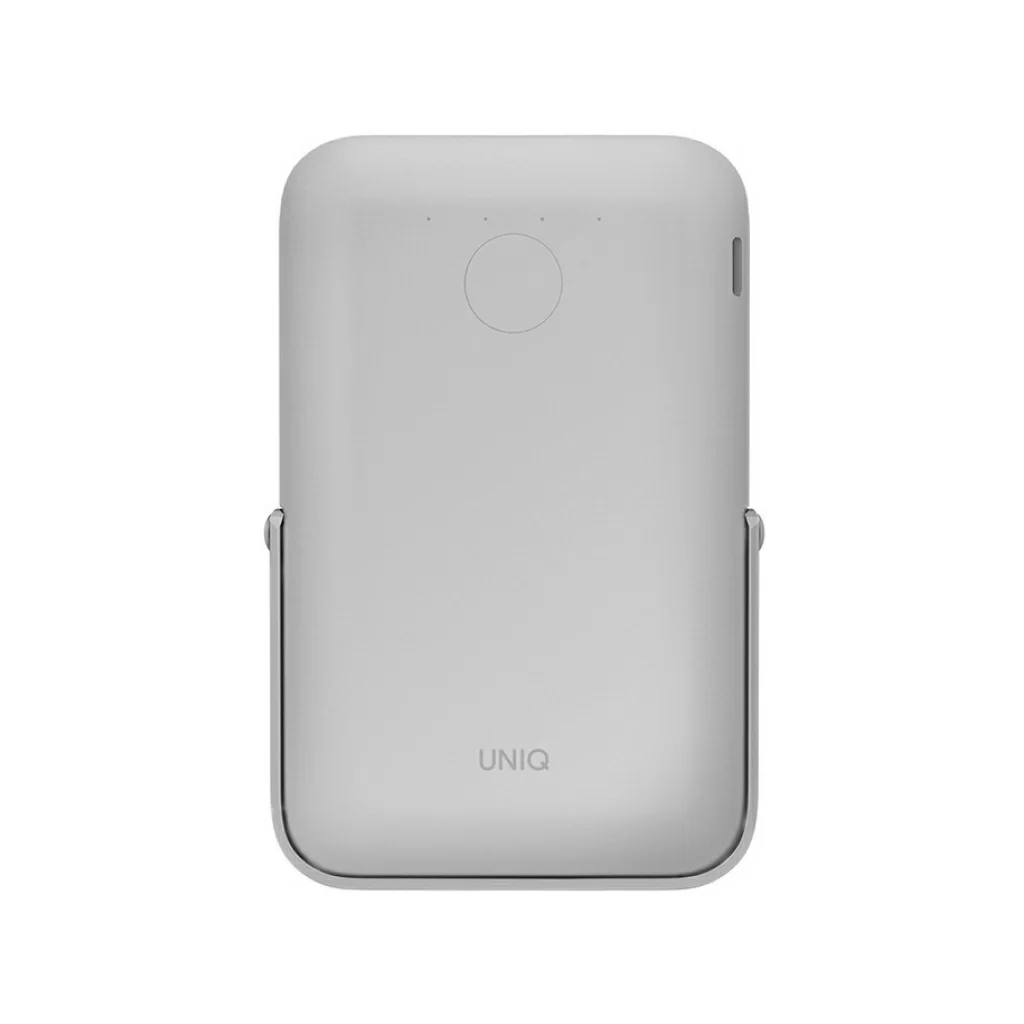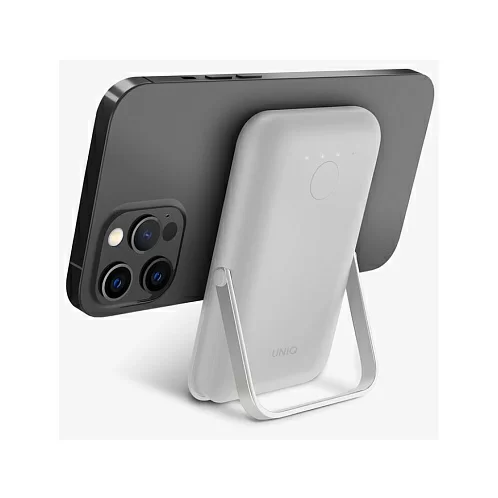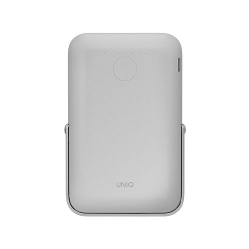Внешний аккумулятор Uniq HOVEO 5000W, беспровод 15W, провод USB-C 20W, подставка, светло-серый