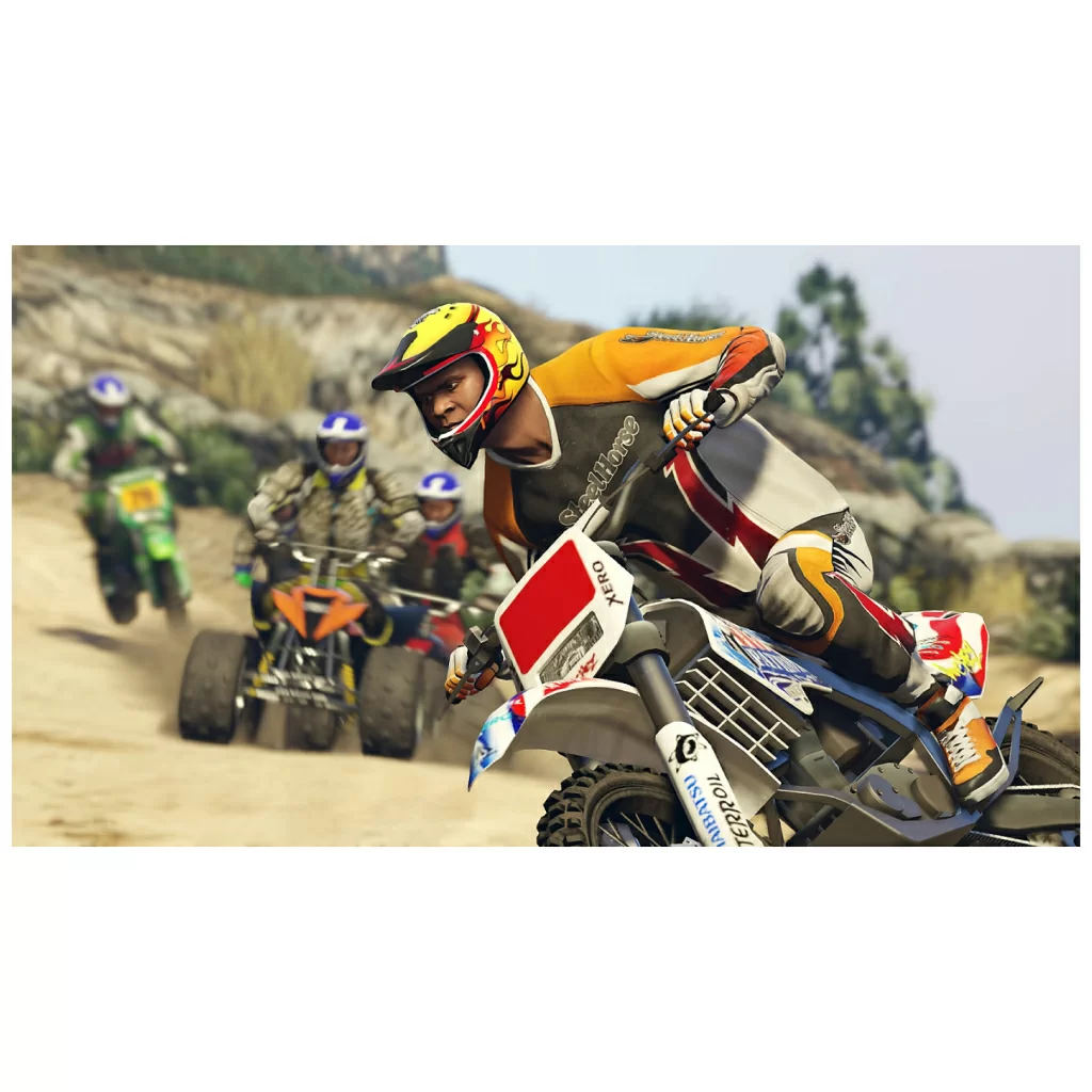 Окунитесь в популярные хиты Grand Theft Auto V и GTA Online с улучшениями для PlayStation 5, в числе которых потрясающая графика, быстрая загрузка сцен, адаптивные триггеры, тактильная отдача, технология Tempest 3D audio и многое другое, а также эксклюзивные материалы для GTA Online.