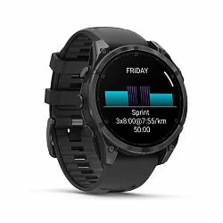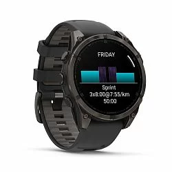 Умные часы Garmin Fenix 8 Sapphire AMOLED 47 мм, титан с DLC, ремешок - силикон, чёрный/серый
