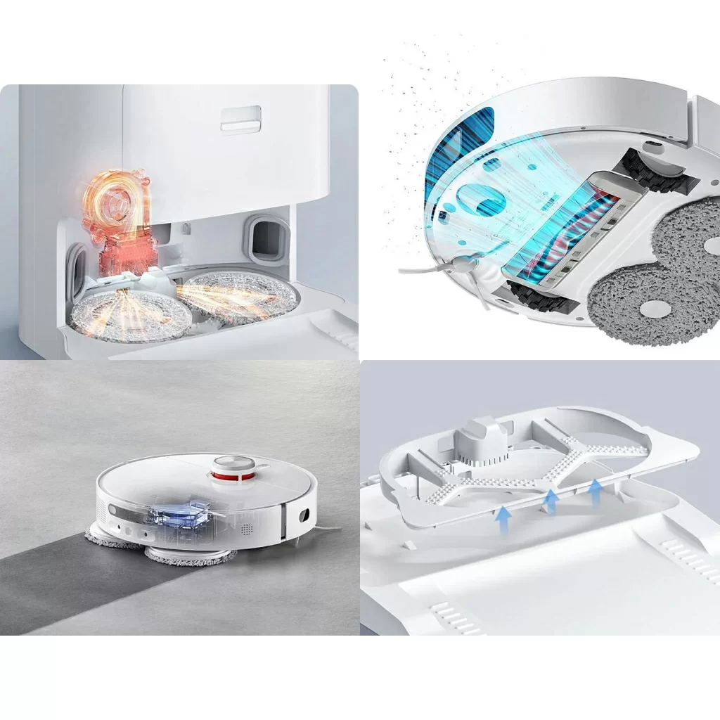 Зарядная станция не только моет швабру, но и сушит её горячим воздухом, устраняя остатки влаги и неприятный запах. По официальном данным, очистка контейнера пылесоса на базе занимает всего 10 секунд. У базы для очистки есть встроенный контейнер для мусора объёмом 2,5 л, который производитель рекомендует очищать раз в месяц при регулярной уборке.